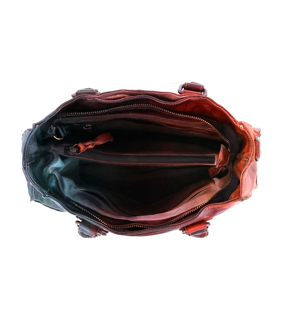 Bruna is the epitome of artisanal craftsmanship, meticulously designed with attention to detail. This two-toned leather bag offers versatility as either a shoulder or crossbody companion, depending on your preference. Its padded shoulder straps ensure comfort during extended wear, while the distinctive X inlay details on the front add a touch of elegance. Bruna securely closes with a zipper, and inside, you'll find a cotton-lined interior featuring a center divider zipper pocket, slip pockets, and an attached key FOB. You'll quickly grow to cherish this delightful piece with every use.