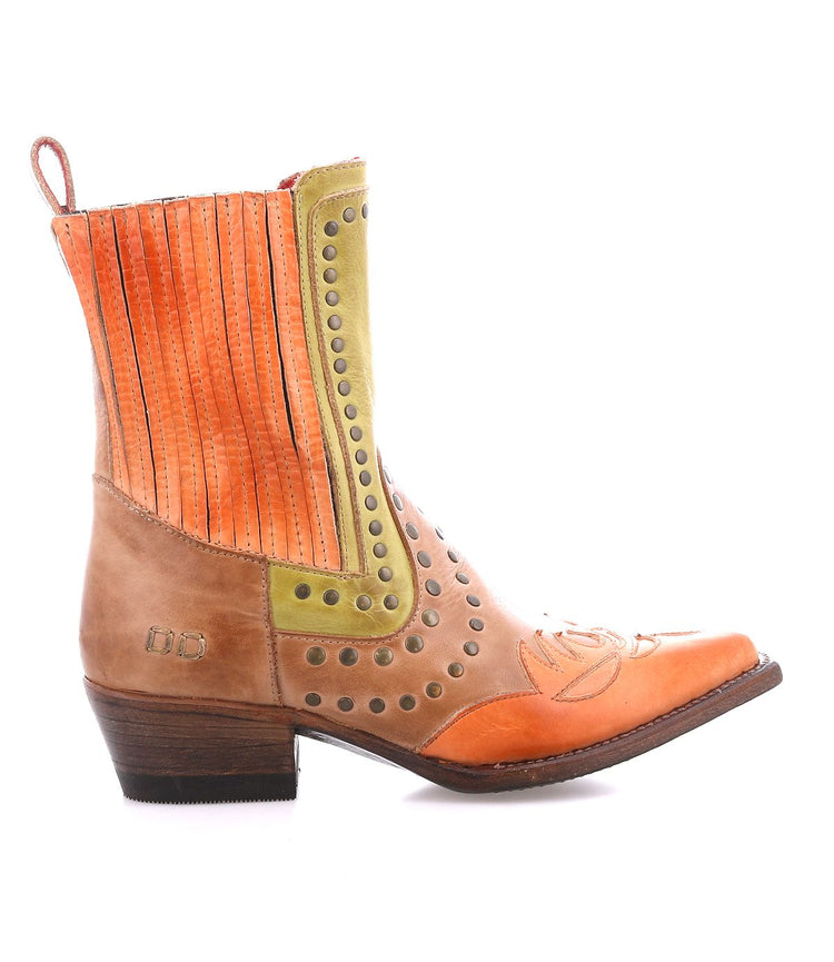 Raise is a playful twist on a classic Western-inspired boot. With its vibrant color combinations, studded accents, and signature Western stitching, this short boot is all about making a statement. The snip toe adds a touch of traditional flair, while the hidden stretch goring ensures easy on-and-off for effortless everyday wear - combining modern style and functionality with tried-and-true Western construction.