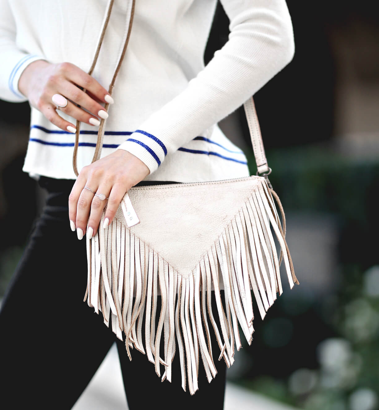 Silverrock brings the drama, but keeps it light. The fringe flap adds texture and motion, giving this small bag big personality. Designed with a secure zip closure and the flexibility to wear as a crossbody, clutch or even a fanny, it moves easily from day to night. Spirited, confident, and not afraid to stand out, Silverrock makes every outfit more interesting